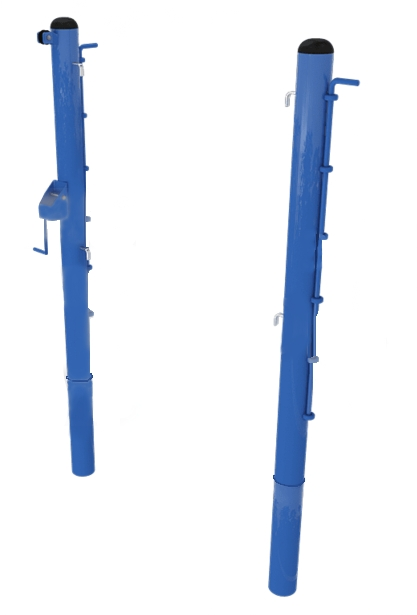 Стойки для большого тенниса изготавливается из металлической трубы Ø76 мм, окрашенной полимерно-порошковой краской, что придает изделиям устойчивость к ультрафиолету, атмосферным осадкам, а также декоративный аккуратный вид.