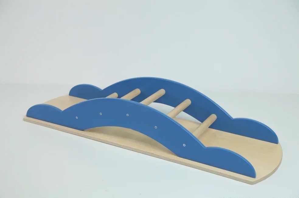 Балансир представлен 2-сторонней платформой с закругленными краями и дугообразной лестницей. Перекладины отшлифованы. Ребенок перемещается по одной или другой стороне качалки, удерживает равновесие.