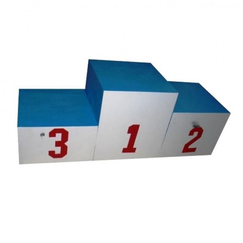 Пьедестал рассчитан на три места. Конструкция усилена металлокаркасом. Толщина фанерных боковых стенок составляет 12 мм.