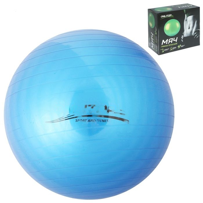 Фитбол (мяч для фитнеса) с гладкой поверхностью выдержит нагрузку до 100 кг. Инвентарь используется во время тренировок всех групп мышц и вестибулярного аппарата, подходит для роста 165-180 см.