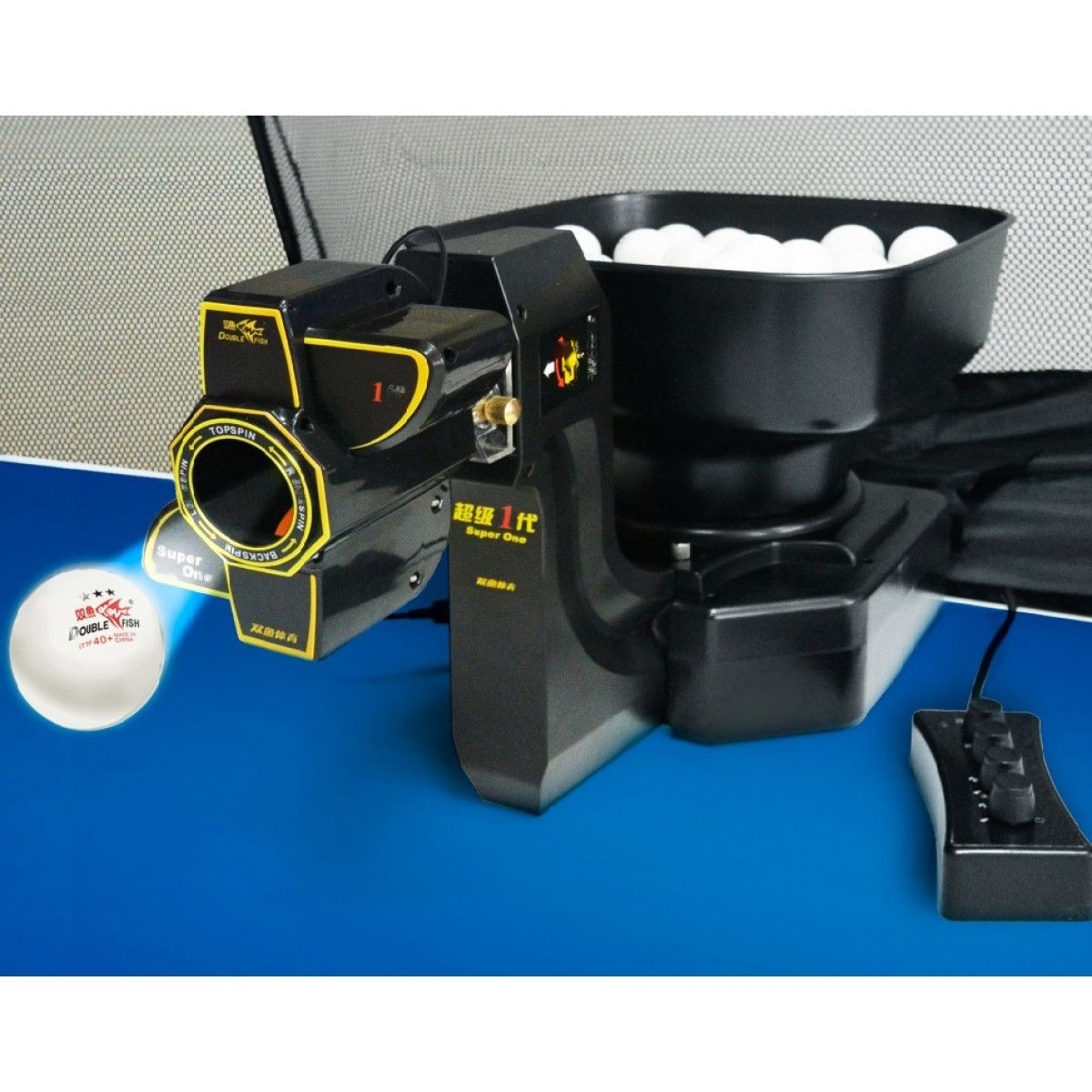 Тренажер для игры в настольный теннис представляет собой автомат с правым и левым, верхним и нижним вращением. Робот подает мячи с разной скоростью и закручиванием. Угол наклона и сторона подачи меняются.
