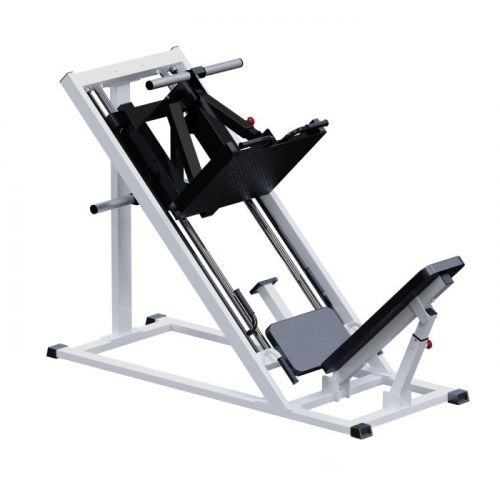 Тренажер для развития мышц ног представлен металлическим каркасом с упругими накладками, между которыми фиксируются бедра, нижняя часть спины и стопы человека. Наклонная пластина пресса поднимается усилием ног. Винты помогают регулировать нагрузку во время жима лежа.