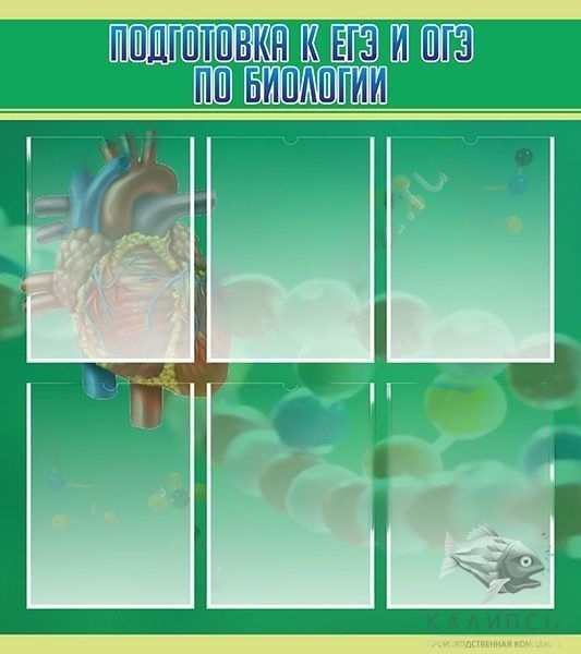 На данном стенде учитель может разместить любую информацию, связанную с подготовкой к экзаменам по биологии. Шесть вертикальных информационных карманов крепятся на двусторонний скотч.