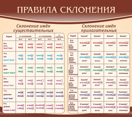 Стенд в школу Правила склонения, 0,9х0,8 м