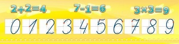 На стенде изображены цифры от 0 до 9. Предназначен для обучения детей счёту и правильному написанию цифр.