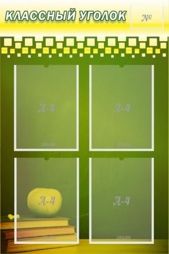 Прямоугольный стенд оснащен 4-мя прозрачными карманами со скошенными углами, в которых можно разместить списки, рекомендации, вопросы, задания, расписание уроков и кружков и другую информацию для учащихся и родителей.