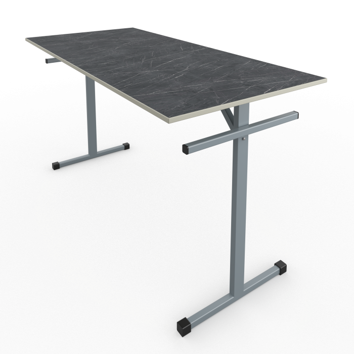 Столешница обеденного стола изготавливается из МДФ толщиной 16мм. Торцы у столешницы закрываются ударопрочной кромкой ПВХ толщиной 2мм. Металлический каркас стола выполнен из металлического профиля сечением 25х25 и 25х40мм с толщиной стенок не менее 1,2мм и покрыт порошковой краской, стойкой к химическим и механическим воздействиям. Опоры стола соединяются между собой траверсой, выполненной из металлического профиля сечением 25х40мм, что придает конструкции стола дополнительную жесткость. На свободных концах труб установлены заглушки из ударопрочных полимеров. Каркас стола имеет полимерные подпятники, предотвращающие повреждение напольного покрытия. Крепление столешницы – болты с шестигранной головкой и футорки.