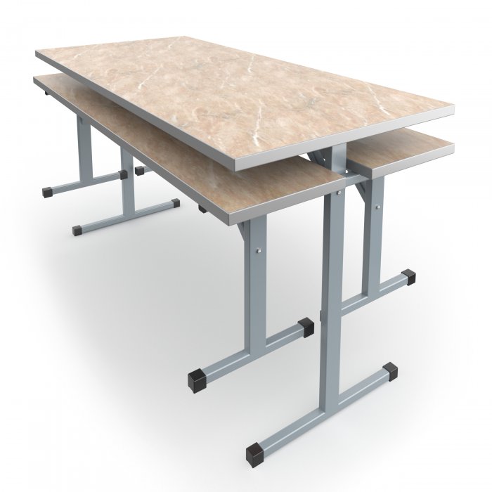 Столешница обеденного стола изготавливается из ДСП толщиной 26мм с покрытием износостойким пластиком. Торцы у столешницы закрываются ударопрочной кромкой ПВХ толщиной 2мм. Металлический каркас стола выполнен из металлического профиля сечением 25х25 и 25х40мм с толщиной стенок не менее 1,2мм и покрыт порошковой краской, стойкой к химическим и механическим воздействиям. Опоры стола соединяются между собой траверсой, выполненной из металлического профиля сечением 25х40мм, что придает конструкции стола дополнительную жесткость. На свободных концах труб установлены заглушки из ударопрочных полимеров. Каркас стола имеет полимерные подпятники, предотвращающие повреждение напольного покрытия. Крепление столешницы – болты с шестигранной головкой и футорки.