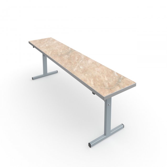 Сиденье скамьи выполнено из ДСП с пластиковым покрытием толщиной 26мм. Торцы сиденья закрыты кромкой ПВХ толщиной 2мм. Металлический каркас разборный и покрыт порошковой краской, стойкой к химическим и механическим воздействиям. Опоры и ножки изготавливаются из профиля квадратного сечения 25х25мм. Вертикальные стойки скамьи изготавливаются из прямоугольного профиля 25х40мм с толщиной стенок не менее 1,2мм. На свободных концах труб установлены заглушки из ударопрочных полимеров. Каркас скамьи имеет полимерные подпятники, предотвращающие повреждение напольного покрытия. Крепление сиденья – болты мебельные с гайками