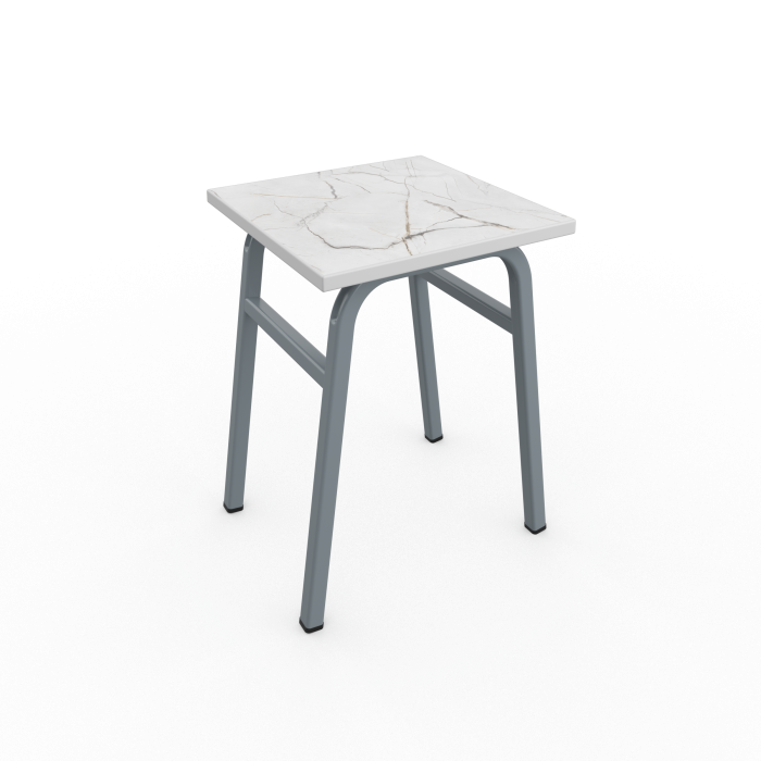 Сиденье табурета выполнено из МДФ 16мм , торцы закрыты противоударной кромкой ПВХ толщиной 2мм. Металлический каркас цельносварной, выполнен из профиля квадратного сечения 20х20 мм с толщиной стенок не менее 1,2 мм и покрыт порошковой краской, стойкой к химическим и механическим воздействиям. На свободных концах труб установлены заглушки из ударопрочных полимеров. Каркас табурета имеет полимерные подпятники, предотвращающие повреждение напольного покрытия. Крепление сиденья скрытое – болты с шестигранной головкой и футорки.