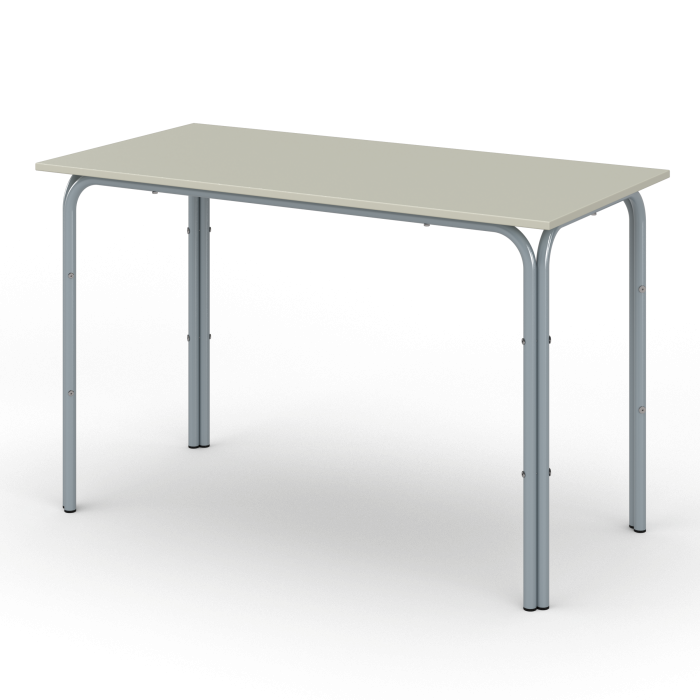 Столешница стола выполнена из ЛДСП 16мм, торцы закрыты противоударной кромкой ПВХ толщиной 2мм. Опоры стола изготовлены из металлической трубы диаметром 25мм и покрыты порошковой краской, стойкой к химическим и механическим воздействиям. На свободных концах труб установлены заглушки из ударопрочных полимеров. Крепление столешницы – болты и футорки.