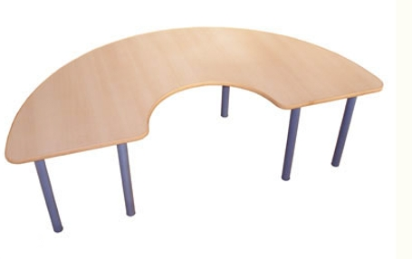Полукруглая рабочая поверхность со внутренней стороны имеет дугообразный вырез. Края столика тщательно обрабатываются, не оставляют заноз.