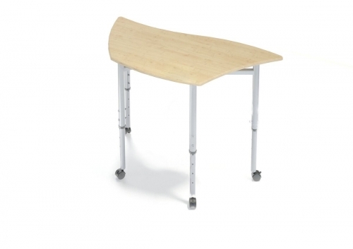 Мебель на растущих опорах впишется в любое пространство за счет асимметричной столешницы. Несколько таких моделей составляются в композицию (например, шестиугольник) перед групповой работой. После занятия парту отодвигают, чтобы использовать отдельно. Рабочая поверхность держится на металлокаркасе, устойчивом к царапинам. Высота регулируется.