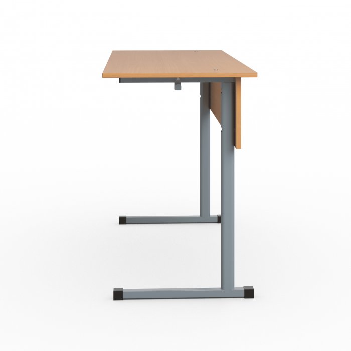 Столешница и фронтальная панель стола выполнены из ЛДСП толщиной 16 мм. Торцы столешницы закрыты противоударной кромкой ПВХ толщиной 2 мм. Торцы фронтальной панели закрыты противоударной кромкой ПВХ толщиной 0,5 мм. Металлический каркас выполнен из профиля квадратного сечения 25×25 мм и плоскоовального профиля 45×25 мм с толщиной стенок не менее 1,5 мм. Каркас покрыт порошковой краской, стойкой к химическим и механическим воздействиям. На свободных концах труб установлены заглушки из ударопрочных полимеров. Каркас стола имеет полимерные подпятники, предотвращающие повреждение напольного покрытия. Вся крепёжная фурнитура на металлокаркасе скрыта внутри трубы для продления срока службы изделия. Переднее крепление на столешнице скрытое (резьбовые втулки и болты М6). Заднее крепление на столешнице сквозное (мебельный болт с гайкой). Фронтальная панель крепится к каркасу на мебельные болты с гайками. В конструкции предусмотрено два крючка для портфелей. Стол имеет цветовую маркировку в соответствии с ростовой группой. Стол изготавливается в соответствии с ГОСТ 11015-93.