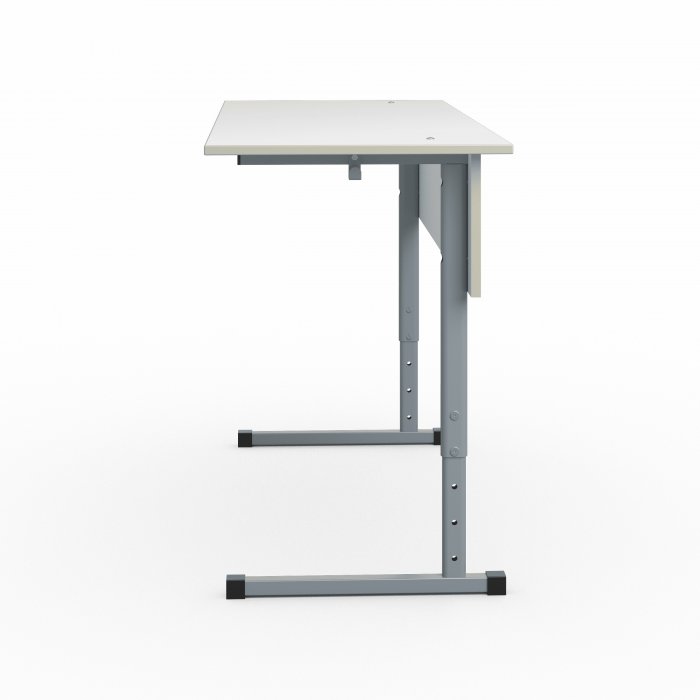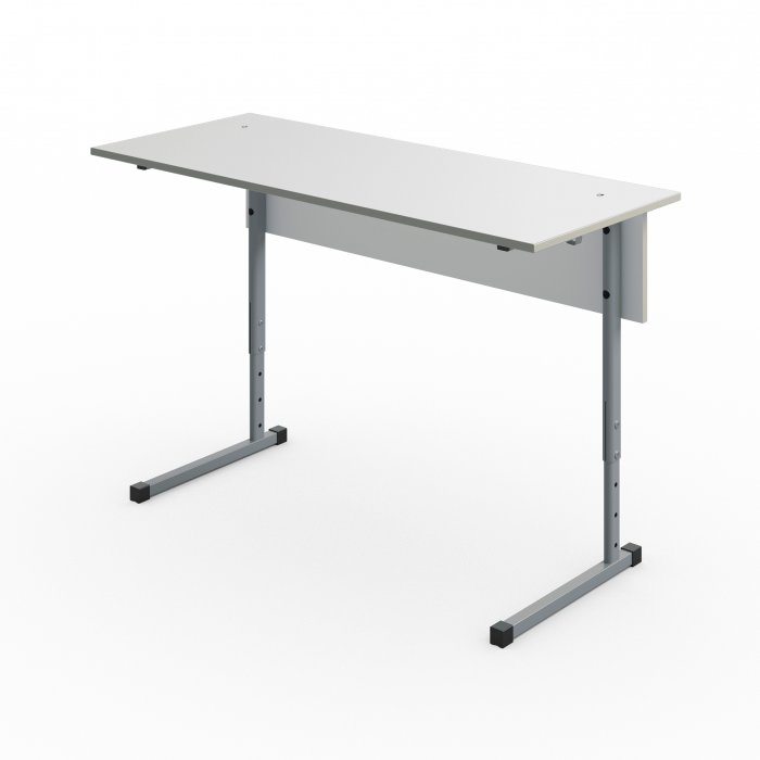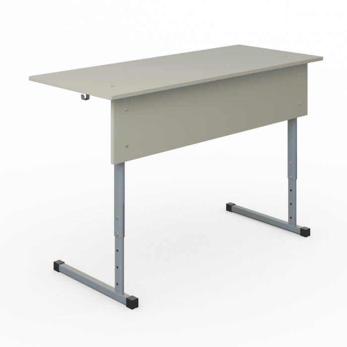 Столешница и фронтальная панель стола выполнены из ЛДСП толщиной 16 мм. Торцы столешницы закрыты противоударной кромкой ПВХ толщиной 2 мм. Торцы фронтальной панели закрыты противоударной кромкой ПВХ толщиной 0,5 мм. Металлический каркас выполнен из профиля квадратного сечения 25×25 мм и плоскоовального профиля 45×25 мм и 20×40 мм с толщиной стенок не менее 1,5 мм. Каркас покрыт порошковой краской, стойкой к химическим и механическим воздействиям. На свободных концах труб установлены заглушки из ударопрочных полимеров. Каркас стола имеет полимерные подпятники, предотвращающие повреждение напольного покрытия. Вся крепёжная фурнитура на металлокаркасе скрыта внутри трубы для продления срока службы изделия. Переднее крепление на столешнице скрытое (резьбовые втулки и болты М6). Заднее крепление на столешнице сквозное (мебельный болт с гайкой). Фронтальная панель крепится к каркасу на мебельные болты с гайками. Диапазон регулировки высоты для ростовой группы 3-7. Механизм регулировки высоты телескопический.Механизм регулировки высоты болтовой. В конструкции предусмотрено два крючка для портфелей. Стол имеет цветовую маркировку в соответствии с ростовой группой. Стол изготавливается в соответствии с ГОСТ 11015-93.