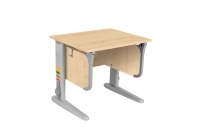 Одноместный стол с изменяемым наклоном столешницы (0-30°) подходит для роста 115-205 см. Предусмотрено 9 ступеней фиксации. Под рабочей поверхностью установлен экран, окруженный боковыми панелями. Закругленные углы конструкции прикрыты пластиковыми накладками. Неровности покрытия пола компенсируются за счет регулировки полозьев.