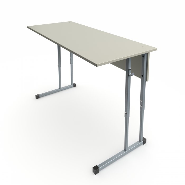 Столешница и фронтальная панель стола выполнены из ЛДСП 16мм. Торцы столешницы закрыты противоударной кромкой ПВХ толщиной 2мм. Торцы фронтальной панели закрыты противоударной кромкой ПВХ толщиной 0,5мм. Металлический каркас выполнен из профиля квадратного сечения 25х25 мм и 20х20мм с толщиной стенок не менее 1,2 мм и покрыт порошковой краской, стойкой к химическим и механическим воздействиям. На свободных концах труб установлены заглушки из ударопрочных полимеров. Каркас стола имеет полимерные подпятники, предотвращающие повреждение напольного покрытия. Вся крепежная фурнитура на металлокаркасах скрыта внутри трубы для продления срока службы изделия. Переднее крепление на столешнице скрытое (резьбовые втулки и болты М6). Заднее крепление на столешнице сквозное (мебельный болт с гайкой). Фронтальная панель крепится к каркасу на мебельные болты с гайками. Регулировка высоты осуществляется с помощью винтовых соединений с гайкой Эриксона. В конструкции предусмотрено 2 крючка для портфелей. Стол имеет цветовую маркировку в соответствии с ростовой группой.