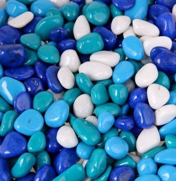 Яркий искусственный грунт украсит дно аквариума в живом уголке. Может использоваться для декора цветочных горшков. Крупные камушки удобно мыть, они не блекнут и не крошатся.