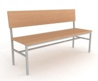 Скамейка для входной зоны состоит из металлического каркаса на 4-х опорах, поперечной перекладины, прямоугольного сиденья, прямоугольной спинки. Подлокотники (в первом варианте решения) образуют дугу и постепенно переходят в передние ножки. Между сиденьем и спинкой есть свободное пространство.