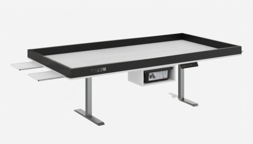 Имеет встроенный уровень для настройки горизонтального положения. Регулировка высоты рабочей поверхности (которая может варьироваться от 710 до 1190 мм) осуществляется при помощи пульта дистанционного управления. Такая мебель подстраивается под рост разных детей, механизм управления высотой и наклоном понятен любому пользователю.