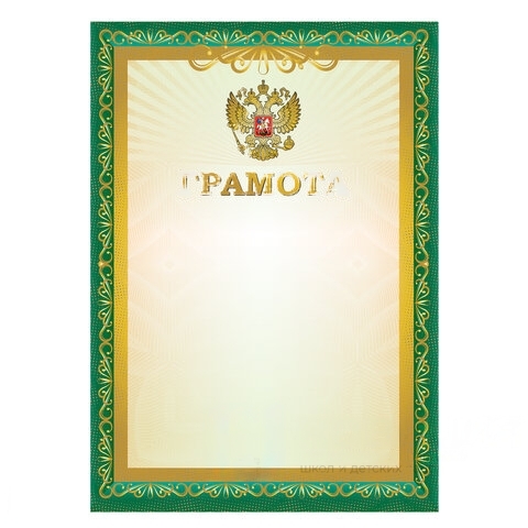 Грамота A4, мелованная бумага 115 г/м2, для лазерных принтеров, зеленая, STAFF, 111798