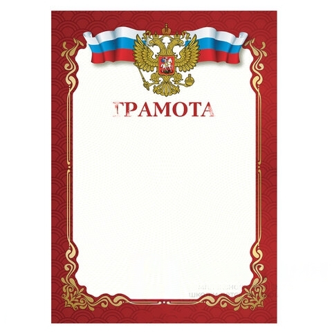 Грамота A4, мелованная бумага 115 г/м2, для лазерных принтеров, красная, STAFF, 111799