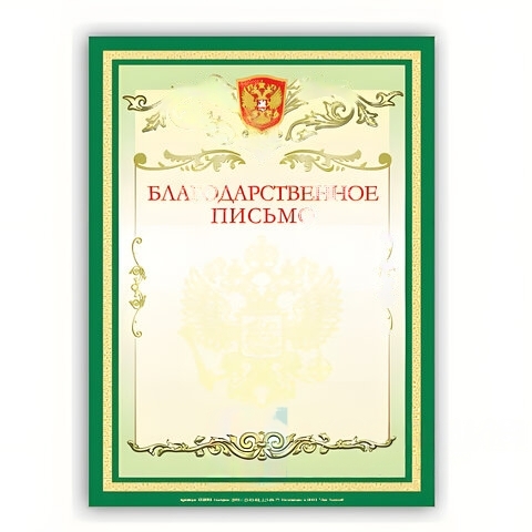 Грамота "Благодарственное письмо" А4, мелованный картон, зеленая, BRAUBERG, 122093