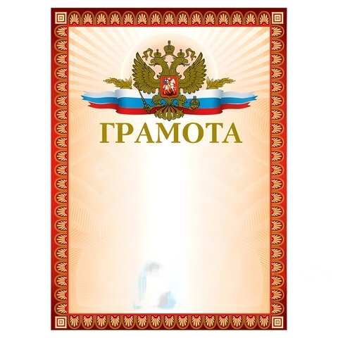 Грамота А4, мелованный картон, конгрев, тиснение фольгой, красная, BRAUBERG, 123062