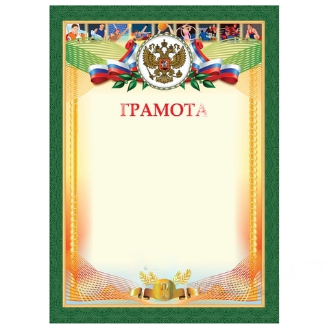 Грамота "Спортивная", А4, плотная мелованная бумага 200 г/м2, для лазерных принтеров, золотая, STAFF, 128901