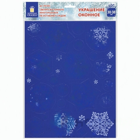 Украшение для окон и стекла ЗОЛОТАЯ СКАЗКА "Снежинки светящиеся в темноте 1", 30х38 см, ПВХ, 591262