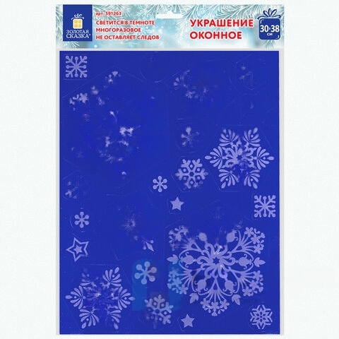 Украшение для окон и стекла ЗОЛОТАЯ СКАЗКА "Снежинки светящиеся в темноте 2", 30х38 см, ПВХ, 591263