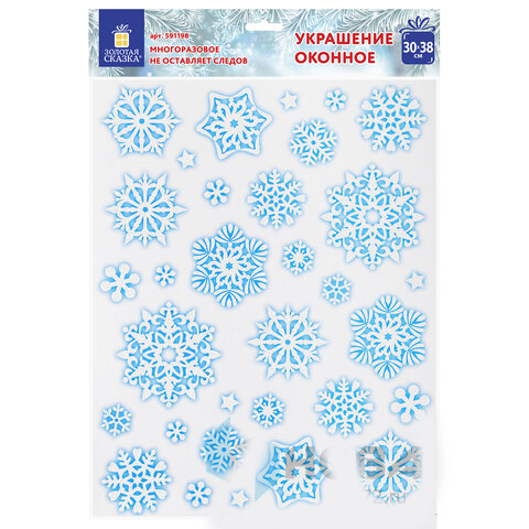 Украшение для окон и стекла ЗОЛОТАЯ СКАЗКА "Голубые снежинки 4", 30х38 см, ПВХ, 591198