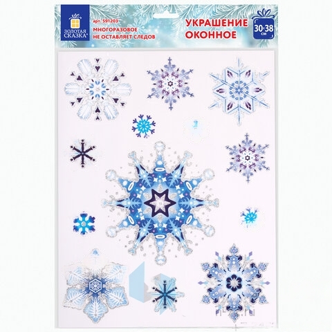 Украшение для окон и стекла ЗОЛОТАЯ СКАЗКА "Синие снежинки 1", 30х38 см, ПВХ, 591203