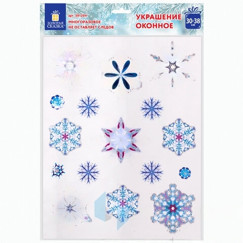 Украшение для окон и стекла ЗОЛОТАЯ СКАЗКА "Синие снежинки 2", 30х38 см, ПВХ, 591204