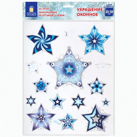 Украшение для окон и стекла ЗОЛОТАЯ СКАЗКА "Синие снежинки 3", 30х38 см, ПВХ, 591205