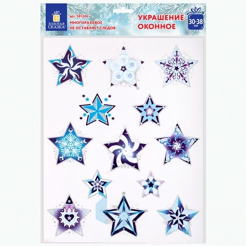 Украшение для окон и стекла ЗОЛОТАЯ СКАЗКА "Синие снежинки 4", 30х38 см, ПВХ, 591206