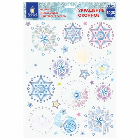 Украшение для окон и стекла ЗОЛОТАЯ СКАЗКА "Цветные снежинки 4", 30х38 см, ПВХ, 591222