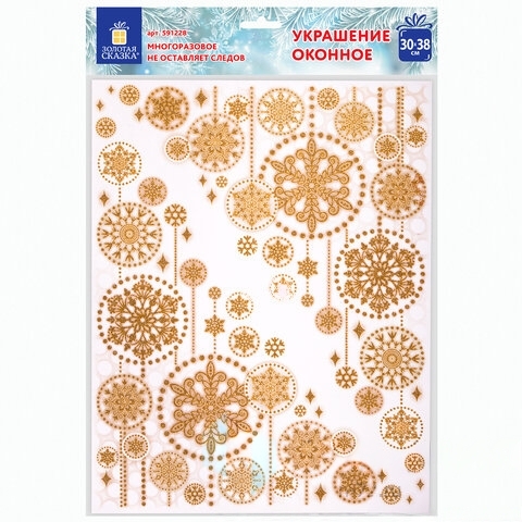 Украшение для окон и стекла ЗОЛОТАЯ СКАЗКА "Узоры из золотых снежинок 2", 30х38 см, ПВХ, 591228