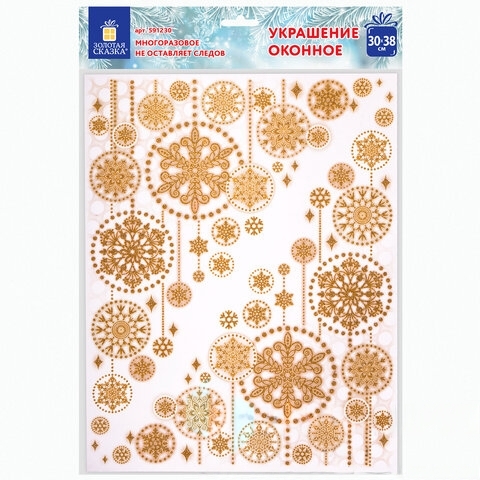 Украшение для окон и стекла ЗОЛОТАЯ СКАЗКА "Узоры из золотых снежинок 4", 30х38 см, ПВХ, 591230