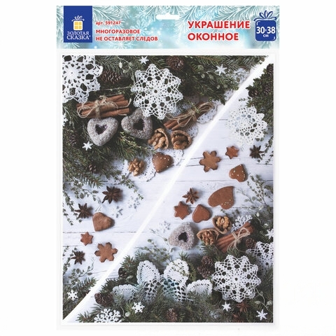 Украшение для окон и стекла ЗОЛОТАЯ СКАЗКА "Новогодняя композиция 1", 30х38 см, ПВХ, 591247