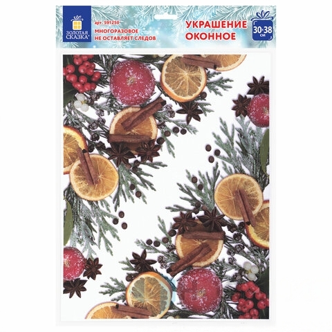 Украшение для окон и стекла ЗОЛОТАЯ СКАЗКА "Новогодняя композиция 4", 30х38 см, ПВХ, 591250