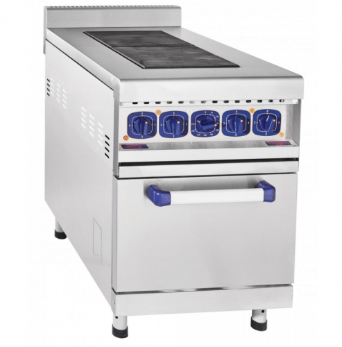 Чугунные конфорки разогреваются до максимальной температуры за 25 минут, а жарочный шкаф-за 30 минут. Плита оснащена переключателями с плавной регулировкой мощности. Духовка имеет направляющие для гастроемкостей стандарта GN 1/1, а также раздельную регулировку мощности верхних и нижних ТЭНов. Встроенный терморегулятор предохраняет духовку от перегрева.