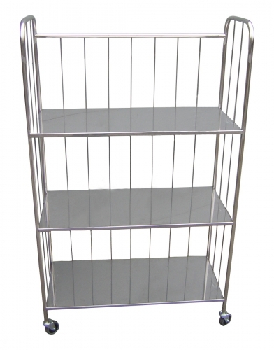 Мебель подходит для складирования и перевозки белья или посуды. Располагает металлокаркасом с 3-мя сплошными полками и 3-мя решетчатыми стенками. Перемещается на 4-х поворотных колесах, d 75 мм. Стойки образуют 2 боковые ручки в форме дуги.