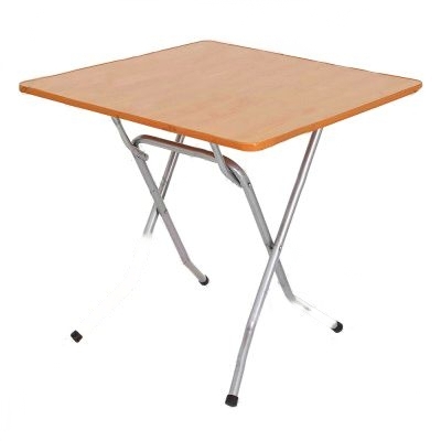 Мебель для зоны приема пищи оснащена складными крестообразными опорами. Квадратная столешница после использования принимает вертикальное положение.