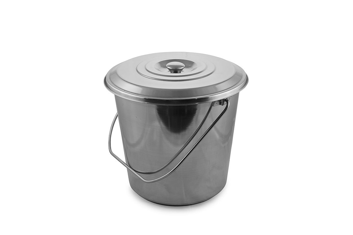 Ведро с крышкой, из нержавеющей стали не поддается коррозии и обладает высокой прочностью. Может использоваться в основном на кухне для кипячения, хранения и переноски продуктов и напитков. Рекомендуется для использования в столовых школ и ДОУ.