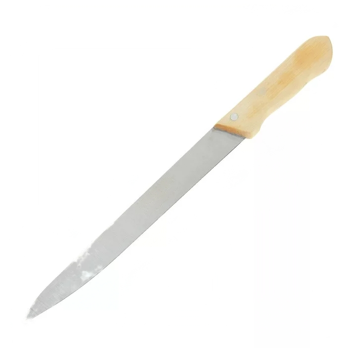 Нож для мяса с деревянной ручкой рекомендуется для использования на кухне в ДОУ и средних общеобразовательных учреждениях. Предназначен для обработки и нарезки мяса. Удобная ручка, выполнена из дерева, не будет скользить в руке. Длинное лезвие позволить нарезать даже крупные куски мяса.