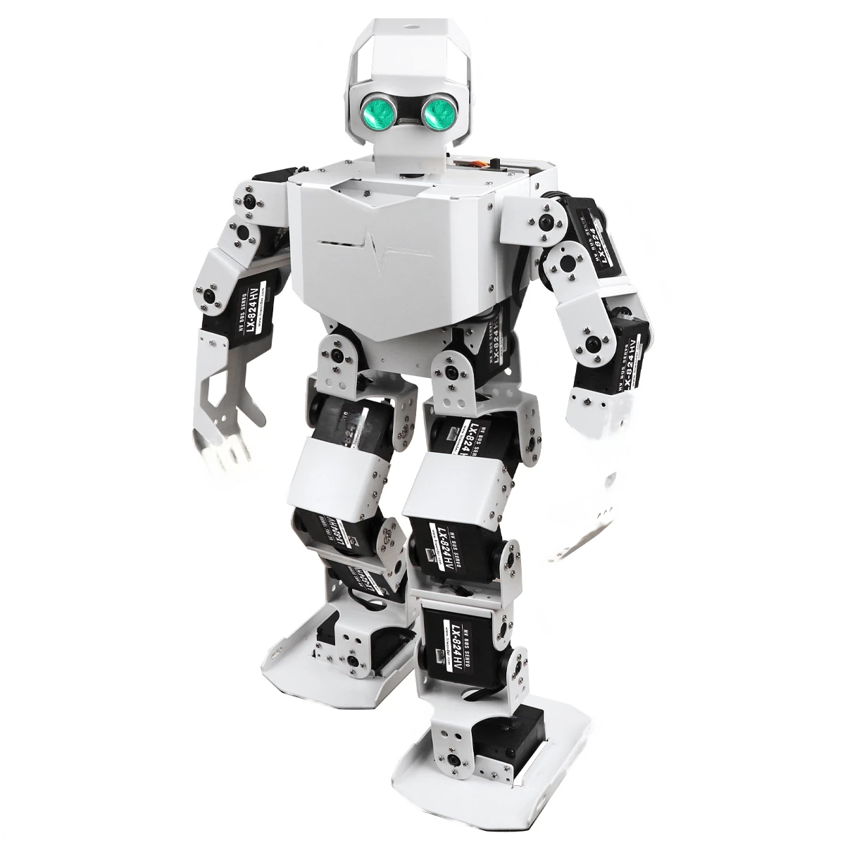 Гуманоид оснащен мощными сервоприводами, компьютером без жесткого диска, встроенной функцией ускорения, специальным ПО. Доступна отладка онлайн, управление дистанционно (датчик расстояния работает в диапазоне: 2-400 см).