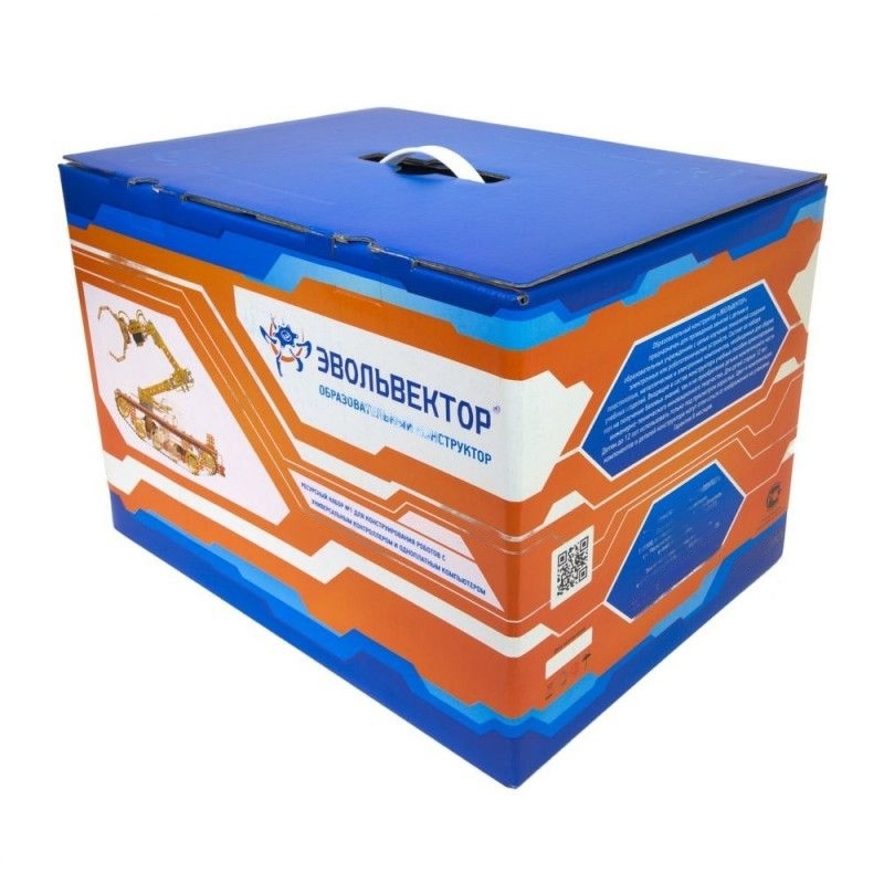 Использование 2-х наборов (базового и ресурсного) дает наиболее полное представление о кинематике и робототехнических конструкциях. Элементы поставляются в пластиковом боксе.