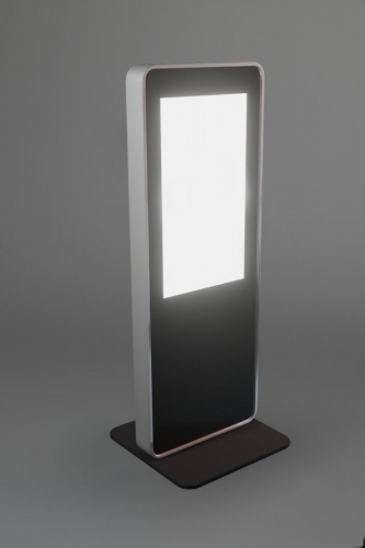 Корпус напольный, стационарный. Экран формата 16:9 в ИК-рамке за 5 мс считывает 2 касания.