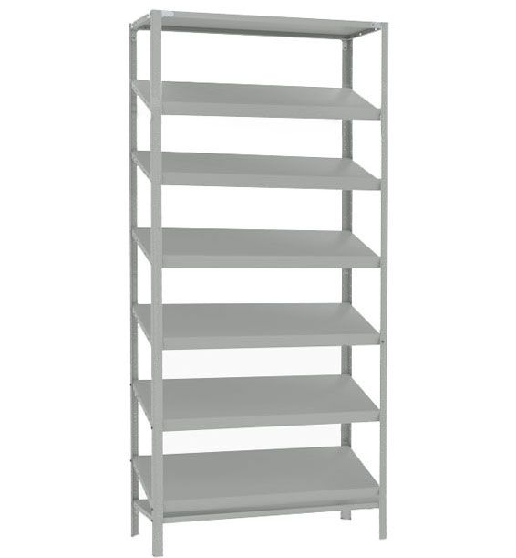 Стеллажная система стоит на металлическом каркасе, который не ржавеет со временем. Опоры шкафа регулируются.